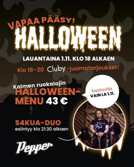 Hinta 24,90 €, ilmaisella Cluby-sovelluksella 19,90 € (lataa puhelimesi sovelluskaupasta ja etsi Pepper Kangasala).